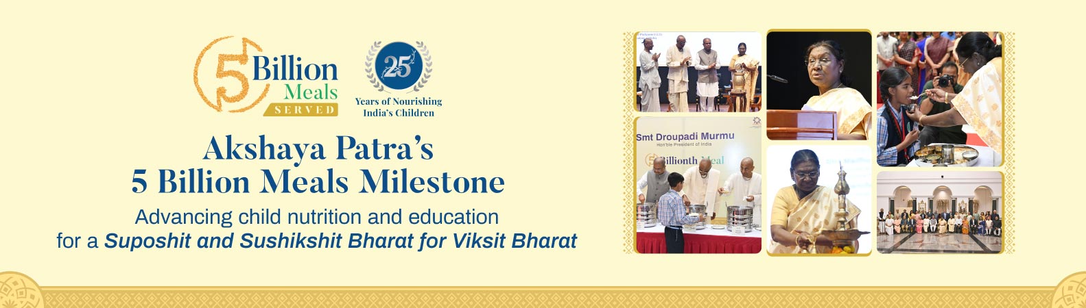 On 17 March 2026, the Hon’ble President of India, Droupadi Murmu, commemorated The Akshaya Patra Foundation’s remarkable milestone of serving 5 billion cumulative meals to children across India, an achievement that also marks 25 years of dedicated service to the nation.