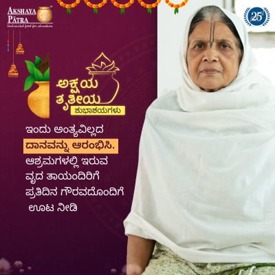 ವಯಸ್ಸಾದ ಮಹಿಳೆಯರಿಗೆ ಅಕ್ಷಯ ಪಾತ್ರೆ ಪ್ರತಿಷ್ಠಾನವು ಪೌಷ್ಟಿಕ ಆಹಾರವನ್ನು ನೀಡುತ್ತಿದೆ.