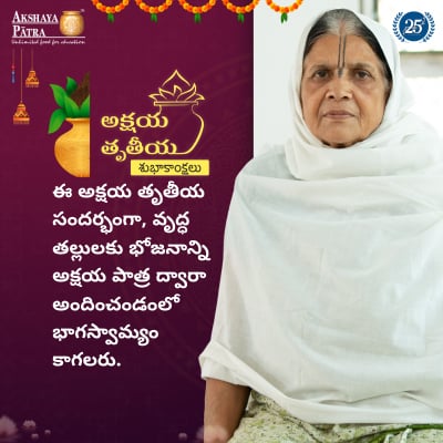 అక్షయ పాత్ర ప్రతిష్ఠానము వృద్ధ మహిళలకు పౌష్టికాహారం అందిస్తోంది. ఒంటరిగా జీవించె మహిళల ఆరోగ్యానికి పౌష్టికాహారం ఎంతో అవసరమైనది అందుకే వారు వృద్ధాప్యము వయసులో గౌరవంగా, ఘనతగా జీవించేలా పౌష్టికాహారం అందించే పథకాన్ని అక్షయ పాత్ర ప్రతిష్ఠానము యోజించింది.