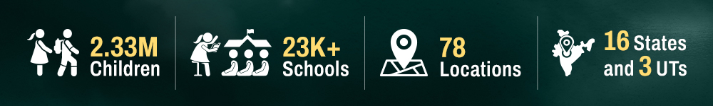 The Akshaya Patra Foundation implements the Government of India’s PM POSHAN Abhiyaan, serving 2.33 million+ children across 78 locations in 16 states & 3 UTs with fresh, nutritious mid-day meals every school day.