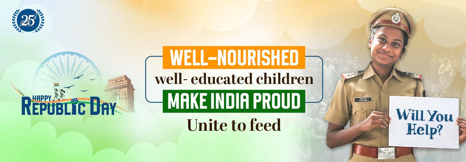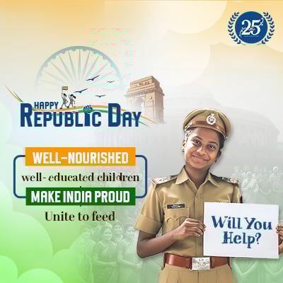 This Republic Day, pledge to empower the future generation by taking care of their nutritional needs. With a contribution of ₹1,500, you can ensure mid-day meals to a child for an academic year.