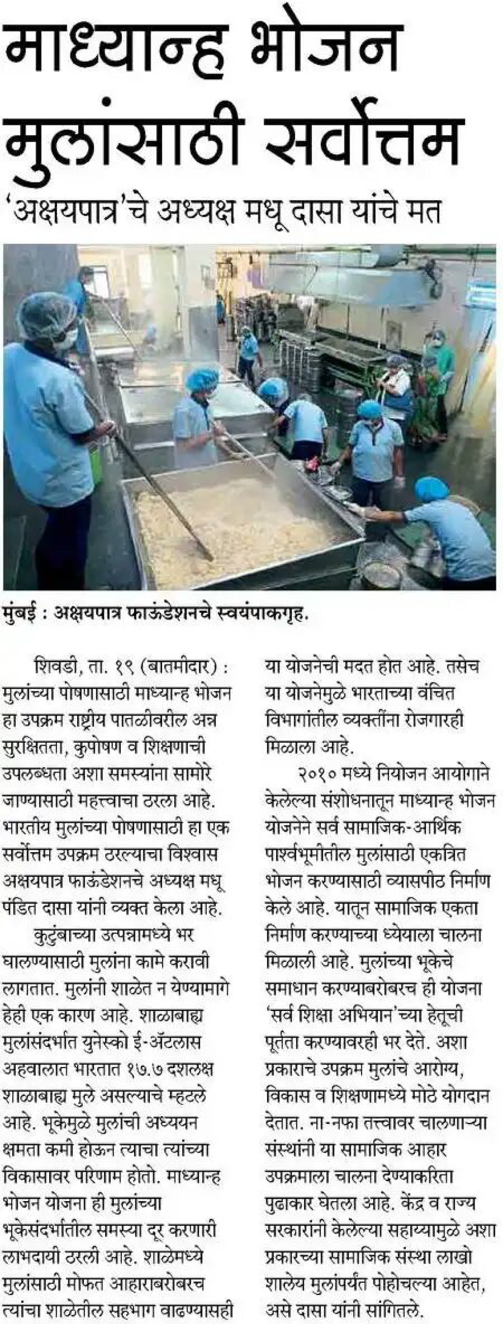Midday meal is the best for children