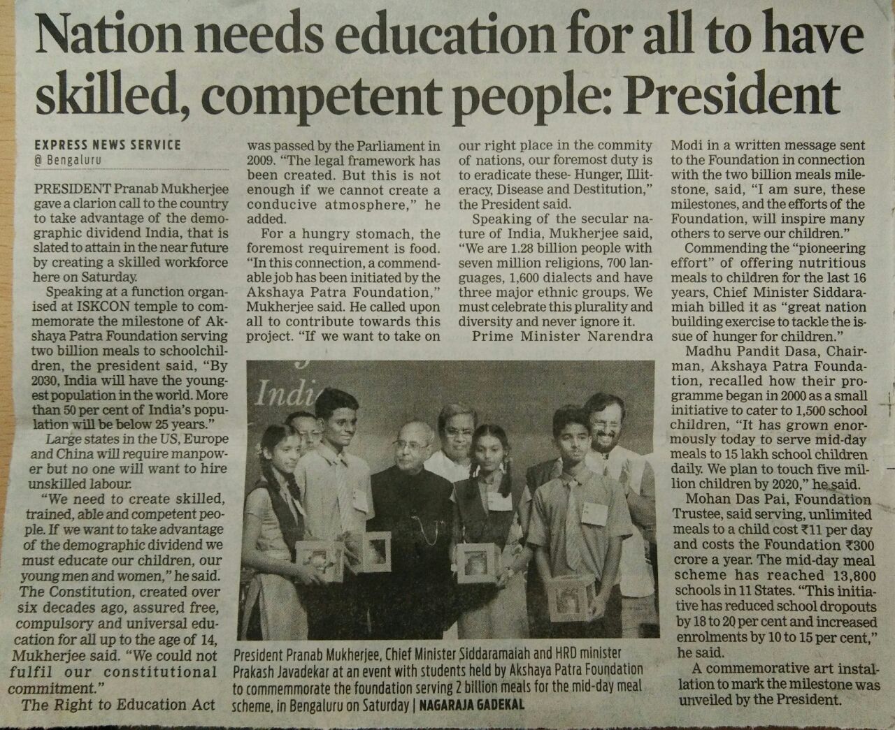 Nation needs education for all to have skilled, competant people: President: