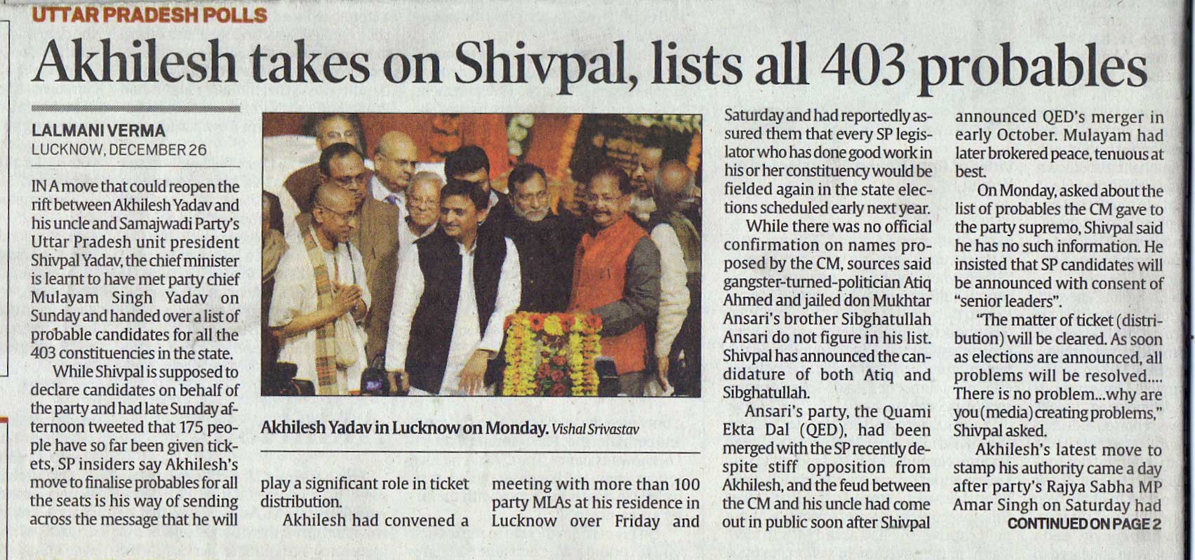 Akhilesh takes on Shivpal,lists all 403 probables