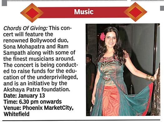 Bangalore Mirror – Chords of Giving - Sona Mohapatra’s interview
