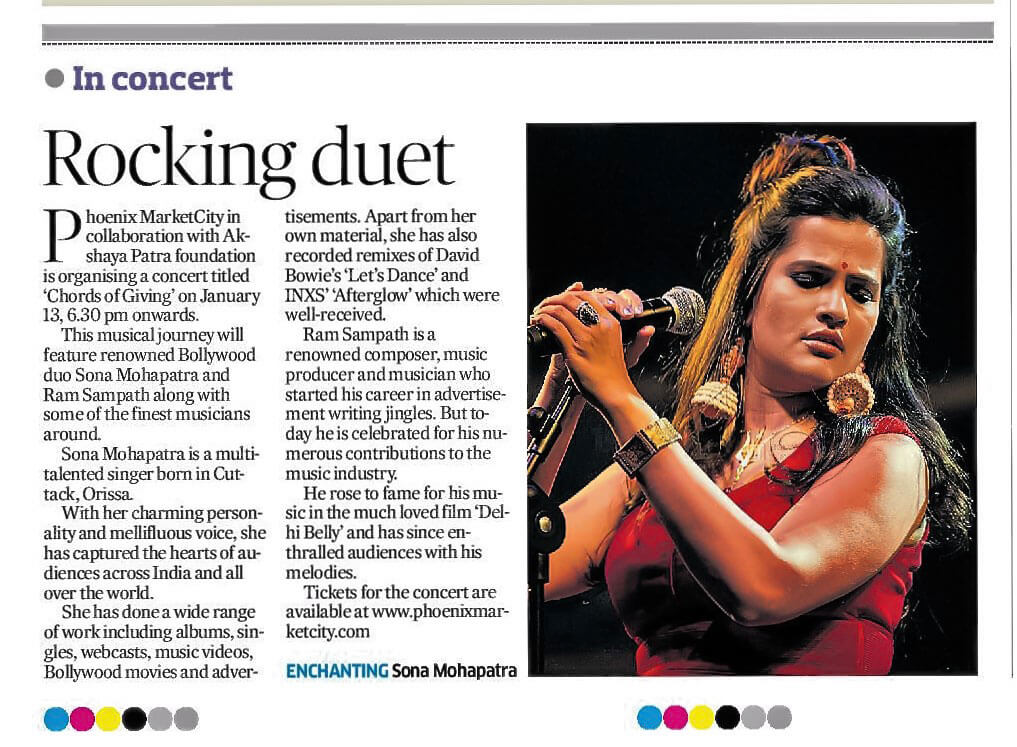 Deccan Herald - Chords of Giving – Sona Mohapatra & Ram Sampath to perform for Akshaya Patra