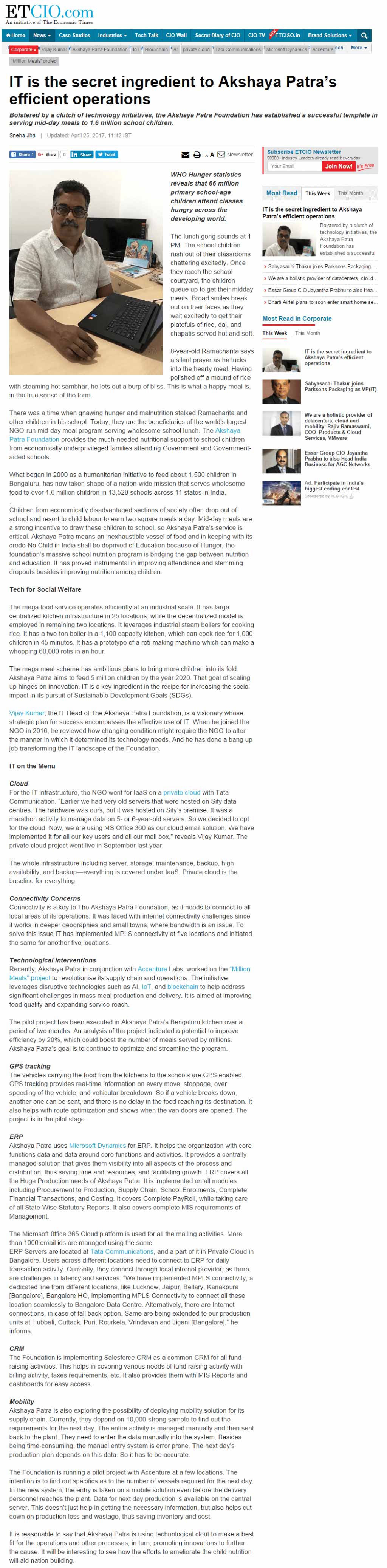 "IT" is the secret ingredient to Akshaya Patra's efficient operations